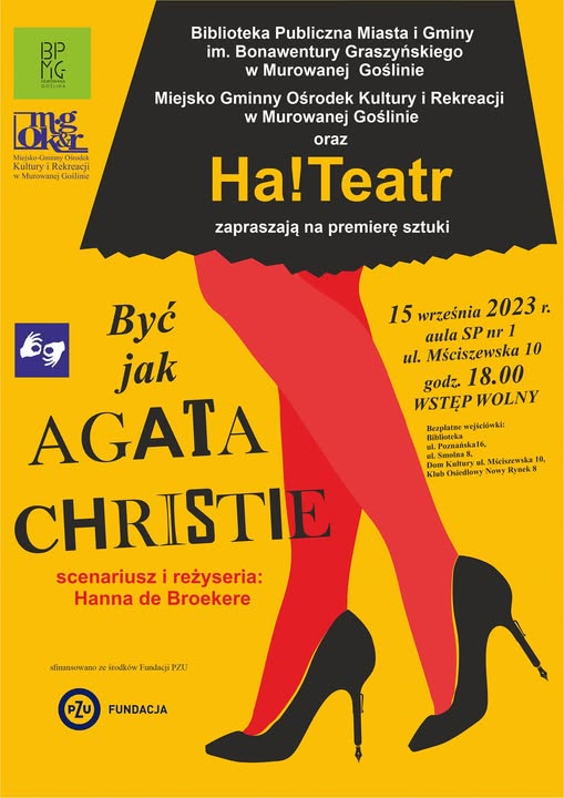 Reżyserka i scenarzystka, Hanna de Broekere, miłośniczka twórczości Agaty Christie, chcąc uczcić 130 rocznicę urodzin najpopularniejszej autorki kryminałów przypadającą na 2020 rok, napisała komedię BYĆ JAK AGATA CHRISTIE. Tekst powstał najpierw w języku angielskim, jednak trudności ze znalezieniem aktorów wymusiły napisanie komedii po polsku. Po krótkiej serii niepowodzeń związanych z pandemią, w 2022 roku, przy wsparciu kierowniczki Osiedlowego Klubu Kultury i dyrektorki Biblioteki Publicznej Miasta i Gminy w Murowanej Goślinie, powstała grupa teatralna Ha!Teatr.