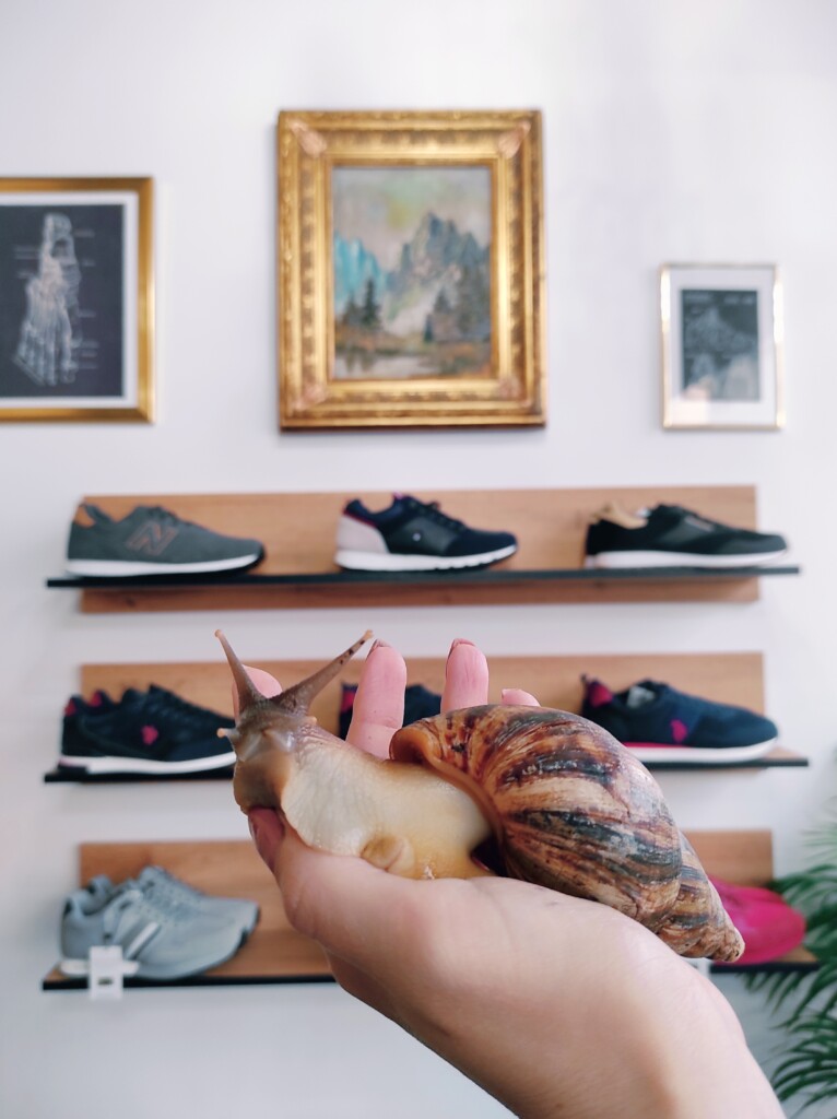 Przez trzy pierwsze lata maskotką sklepu był Marian – ślimak afrykański. Był on tak popularny, że dostał nawet zaproszenie do przedszkola „Groszek”, gdzie pojechałyśmy specjalną na prezentację. Kto był i pamięta Mariana? 🐌